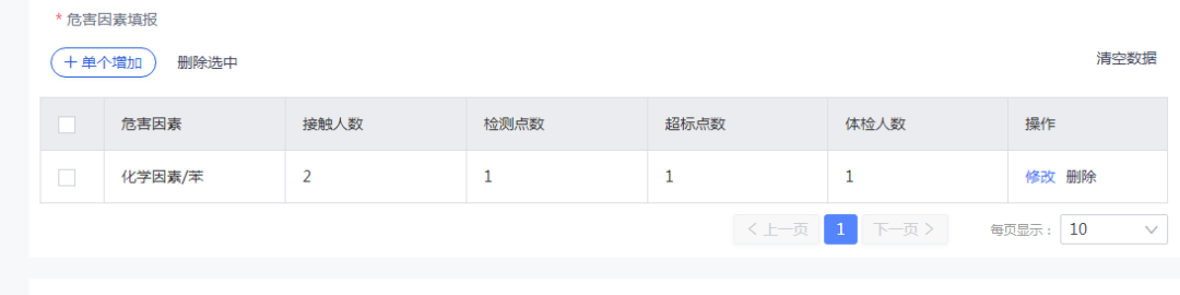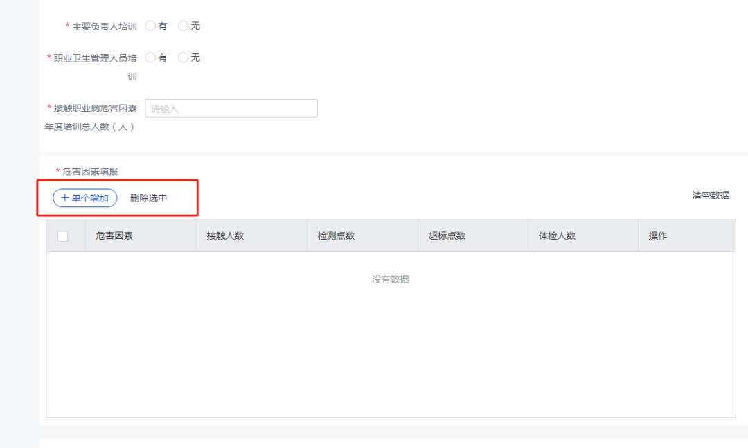 填完基本信息后即可錄入危害因素填報(bào),點(diǎn)擊添加接觸的危害因素