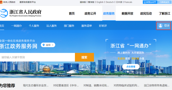 1. 進(jìn)入政務(wù)服務(wù)網(wǎng)“http://zwfw.zj.gov.cn/”