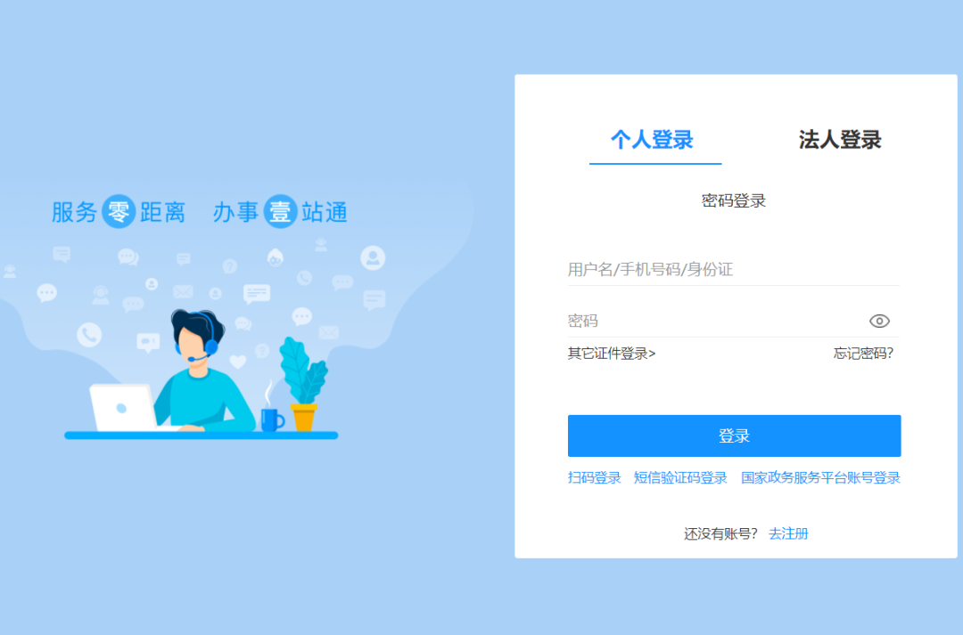 3. 若有賬號(hào),可直接輸入賬號(hào)登錄進(jìn)行申報(bào);若沒有賬號(hào),點(diǎn)擊注冊(cè),注冊(cè)成功后開始申報(bào);